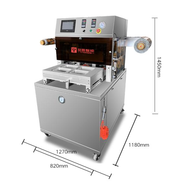 | Item: | Food Tray Skin Sealing Packing Machine YT-760L/4 | Body material: | SUS304 / 6061 Aluminum Alloy |